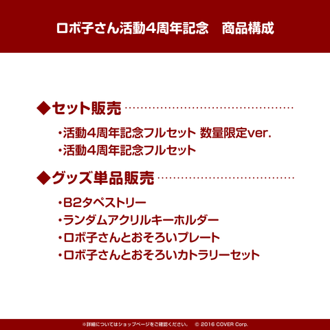 ロボ子さんの活動4周年を記念したフルセット商品です。