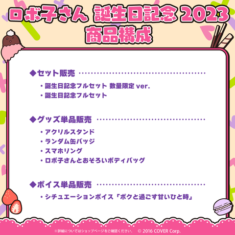 ロボ子さんの誕生日を記念したフルセット商品です。