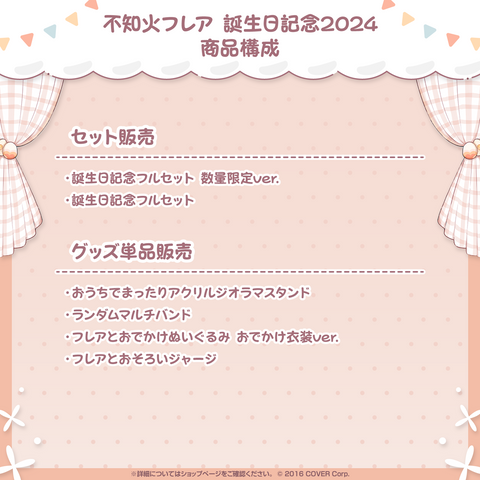 This is the limited edition of the complete set of merch items to celebrate the birthday of Shiranui Flare.