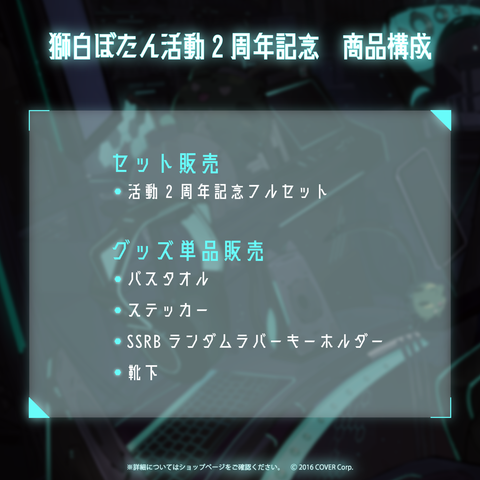 獅白ぼたんの活動2周年を記念したフルセット商品です。