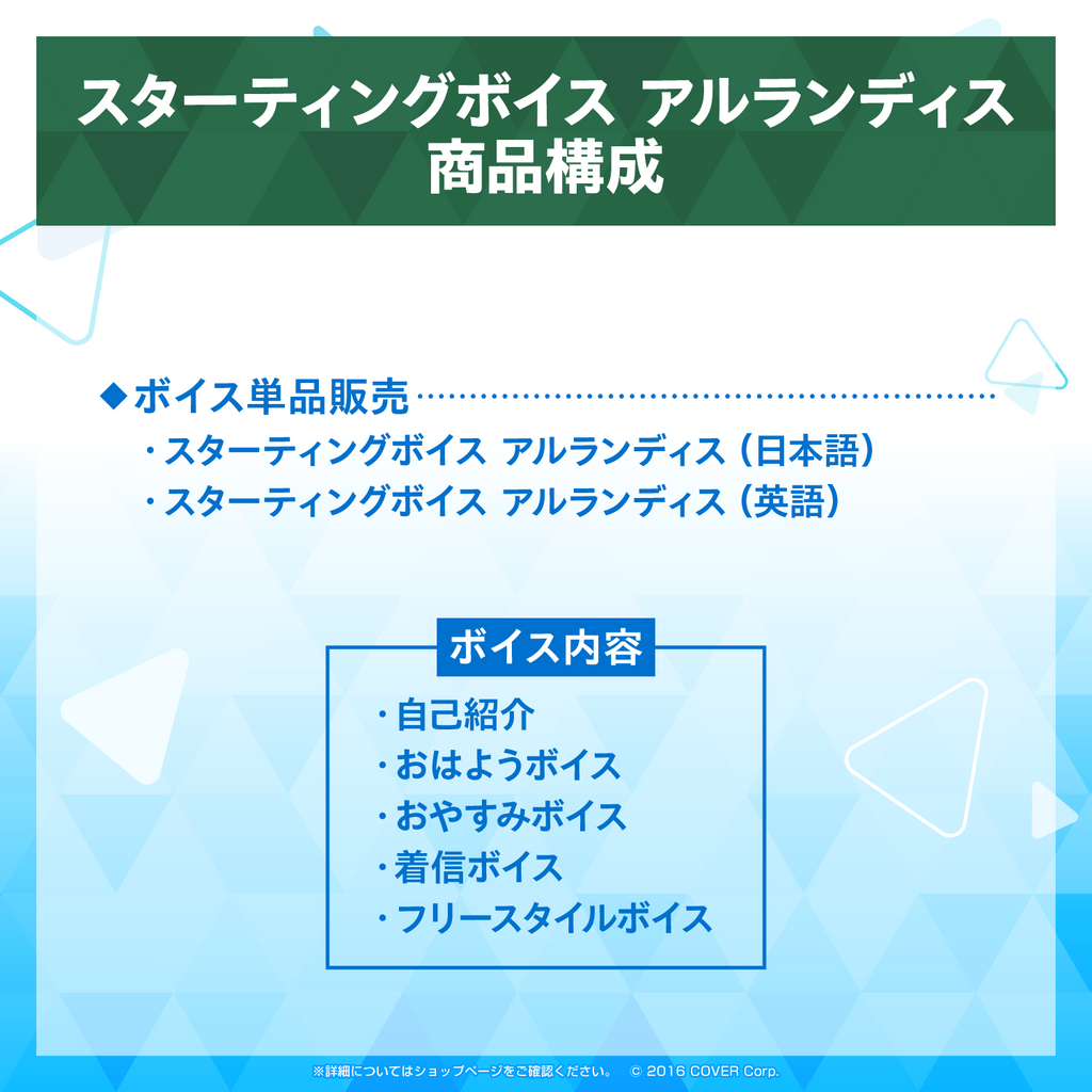 Shipping Period:Generally, the voice packs you purchase will be reflected on your ‘My Account’ page immediately after you complete the order.The "Starting Voice" of Arurandeisu from HOLOSTARS is now available!