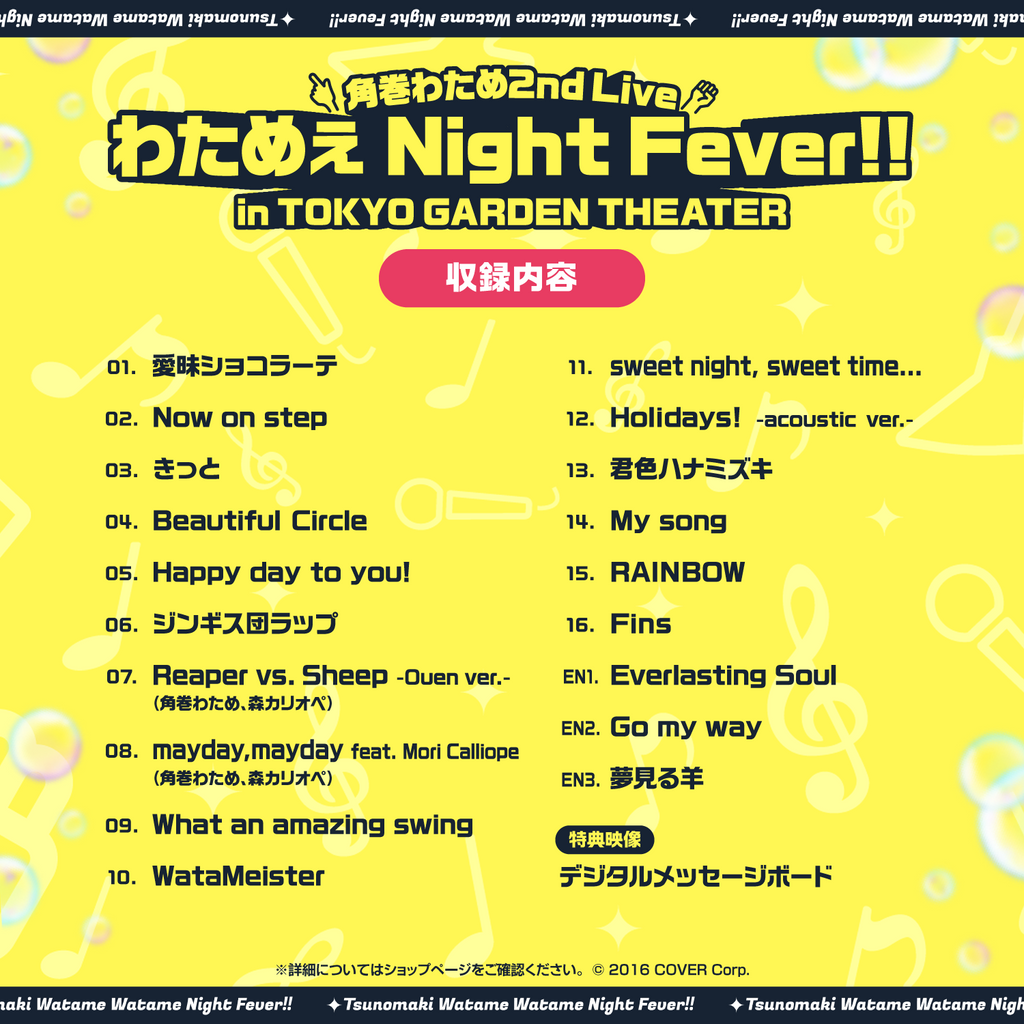 ・Tsunomaki Watame 2nd Live “Watame Night Fever!! in TOKYO GARDEN THEATER” Blu-ray