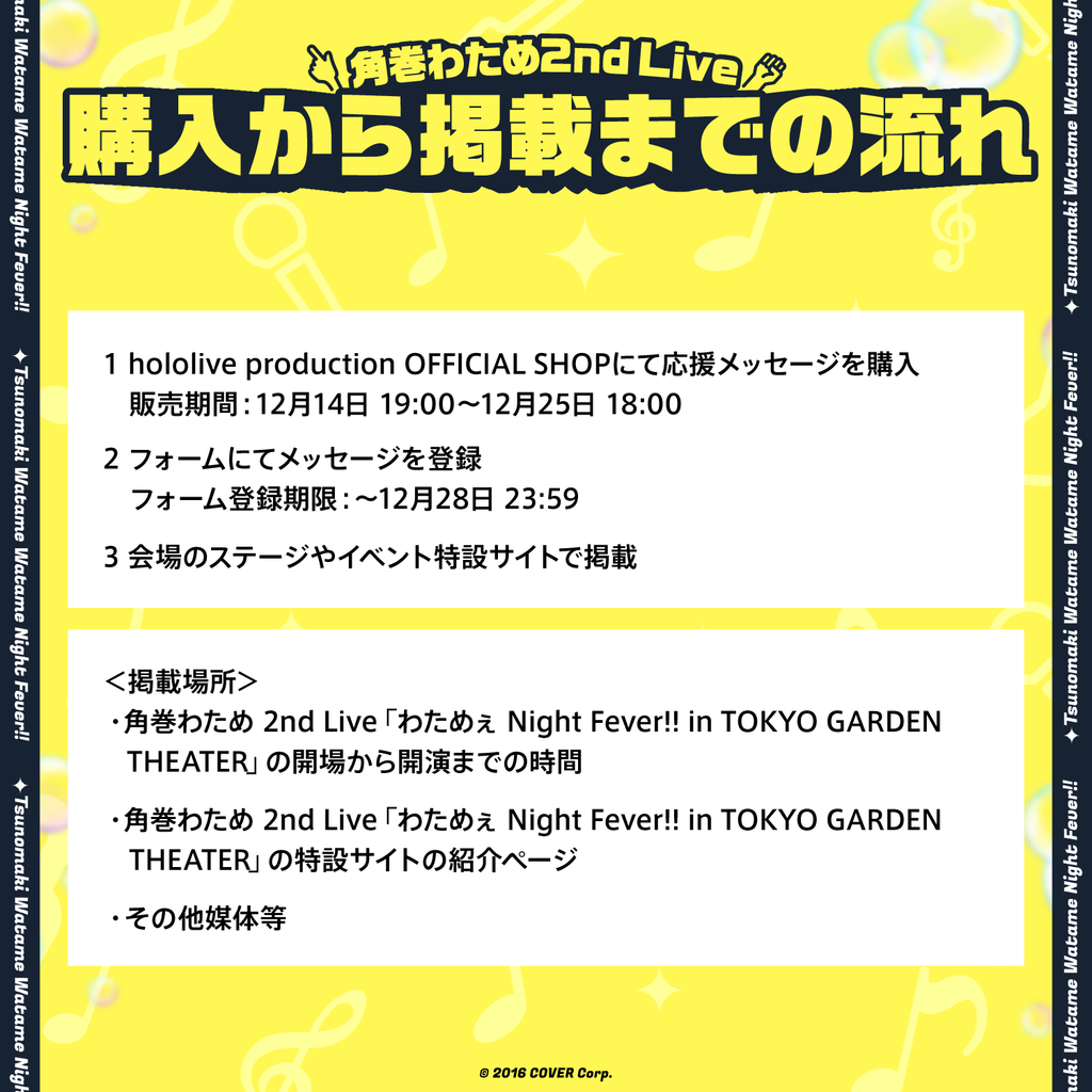 - Tsunomaki Watame 2nd Live “Watame Night Fever!! in TOKYO GARDEN THEATER”