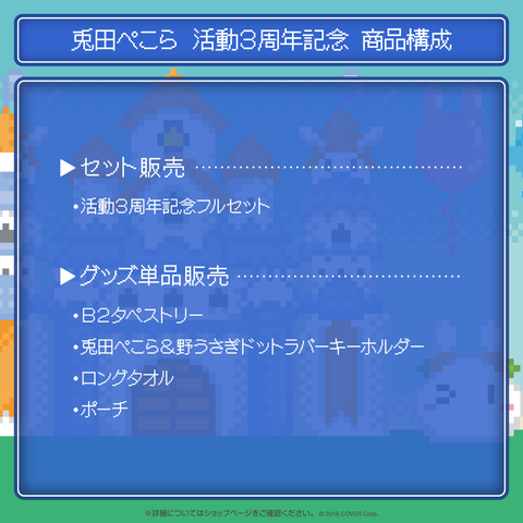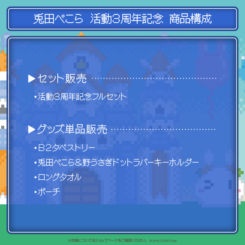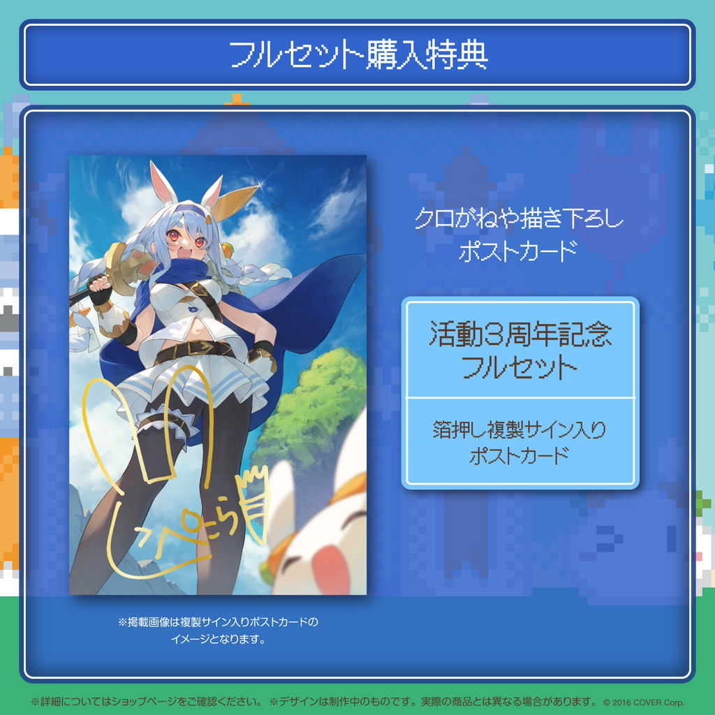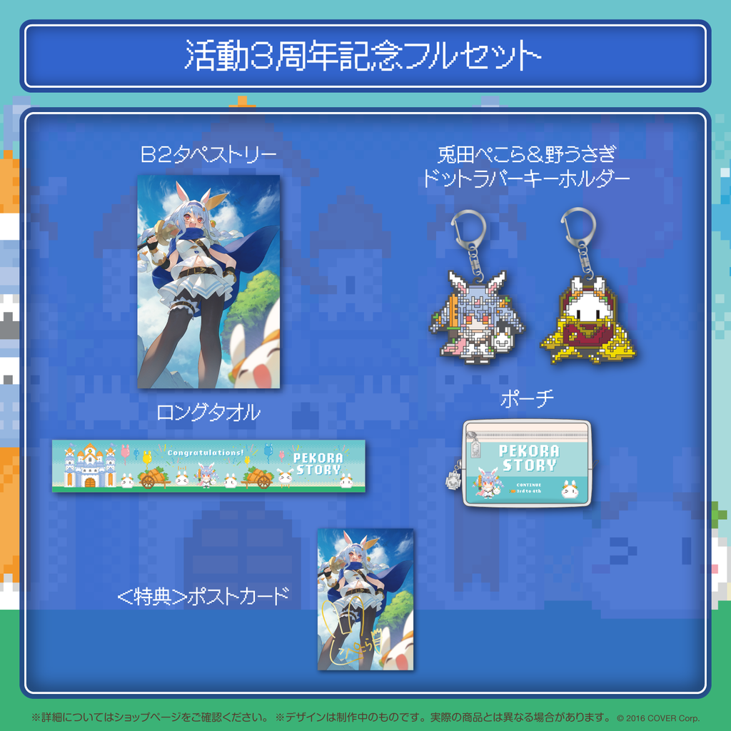 兎田ぺこらの活動3周年を記念したフルセット商品です。