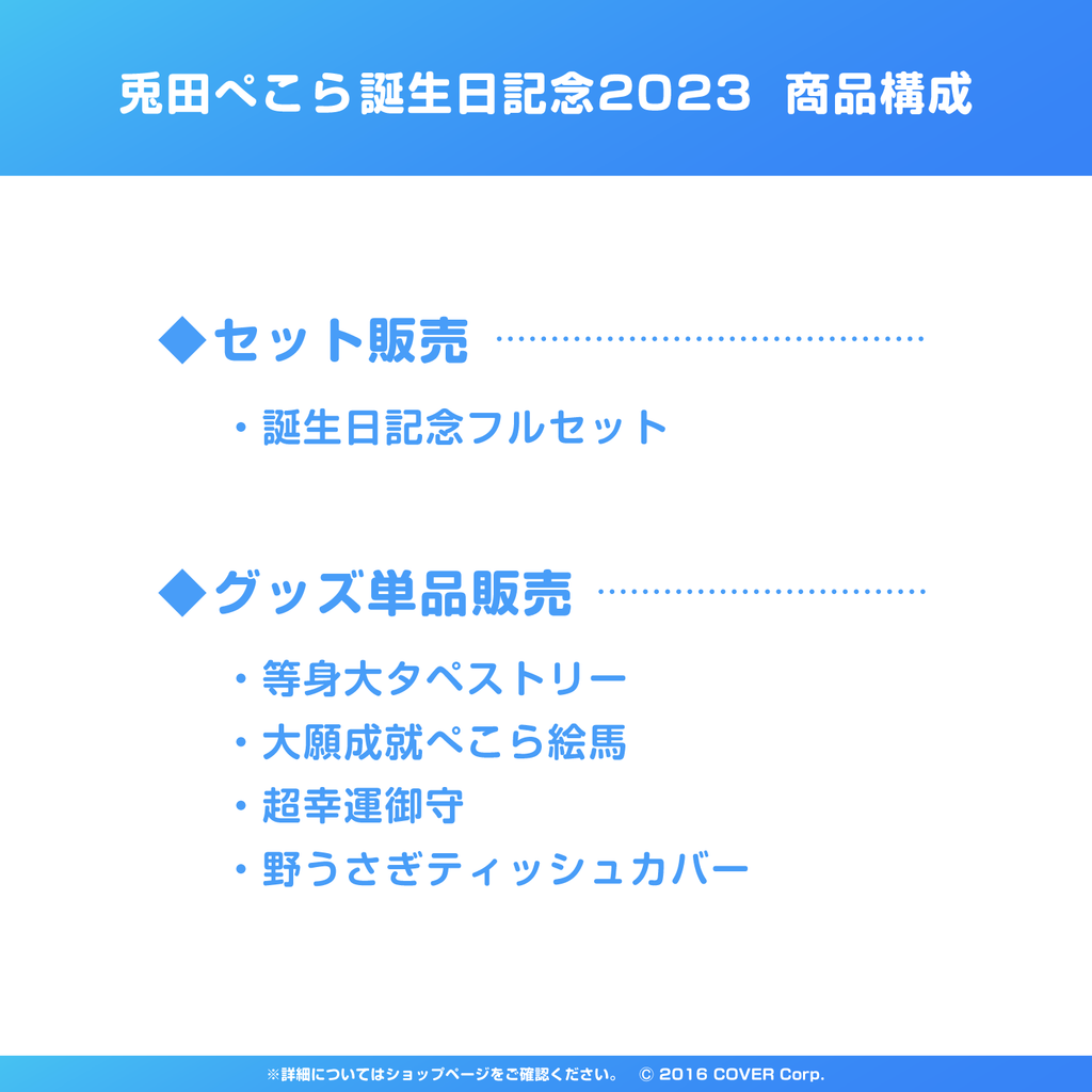 兎田ぺこらの誕生日を記念したフルセット商品です。