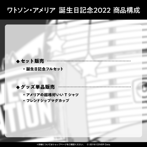 ワトソン・アメリアの誕生日を記念したグッズのフルセット商品です。