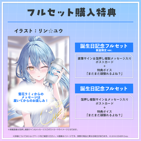 ・Bonus: Postcard with a handwritten autograph and duplicated foil-stamped message from Yukihana Lamy. (Illustration: リン☆ユウ)