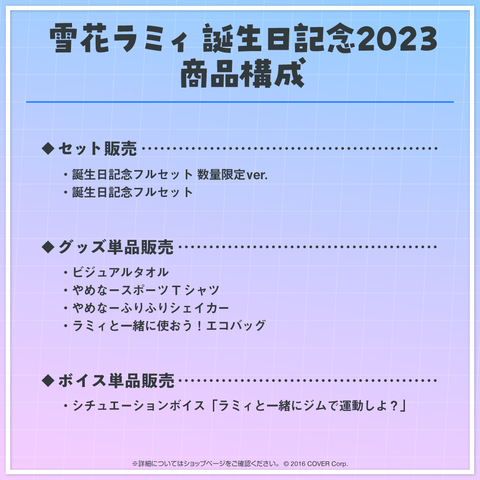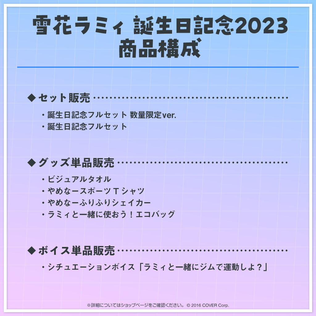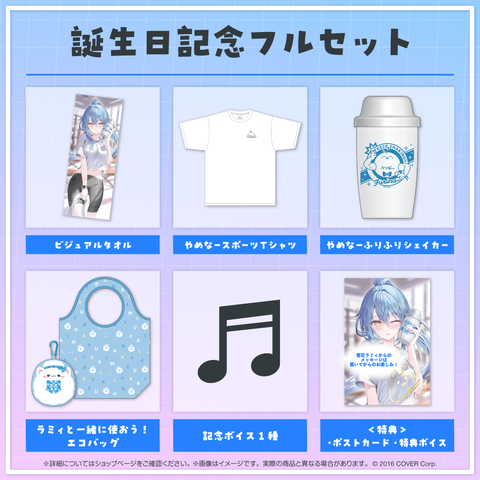 This is the limited edition of the complete set of merch items to celebrate the birthday of Yukihana Lamy.