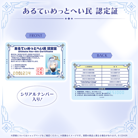 お届け予定日:2026年05月中旬までに発送ホロライブ「天音かなた」の卒業グッズです。