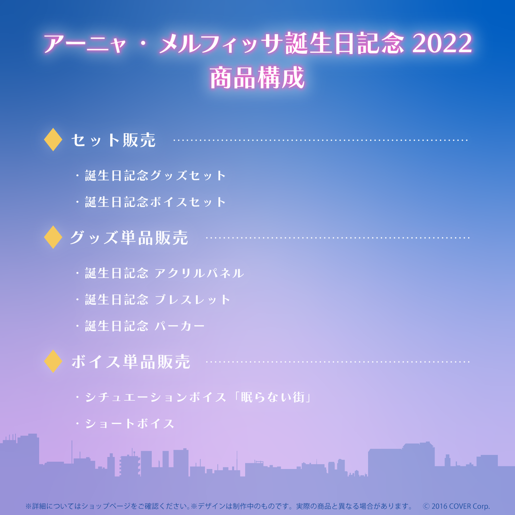 ホロライブプロダクション所属ホロライブインドネシアの「アーニャ・メルフィッサ」の誕生日記念商品です。