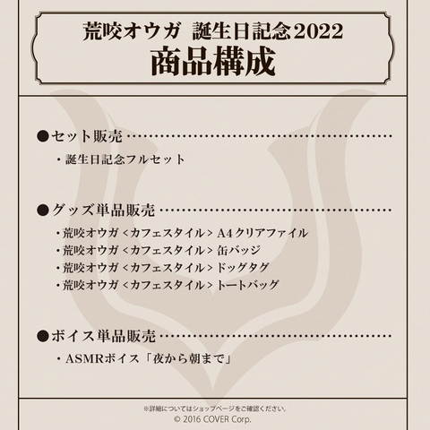 荒咬オウガの誕生日を記念したフルセット商品です。