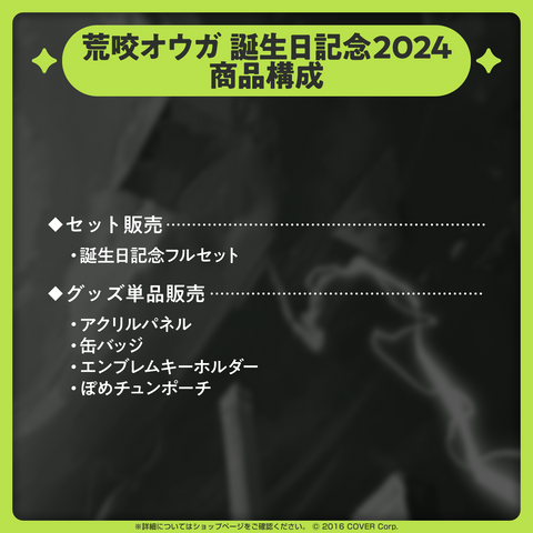 ホロライブプロダクション所属ホロスターズ「荒咬オウガ」の誕生日記念商品です。