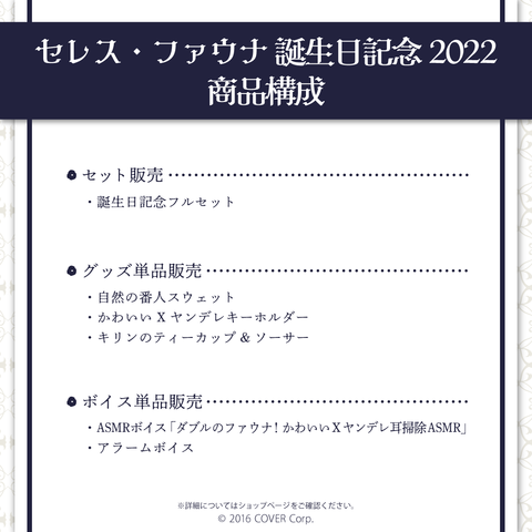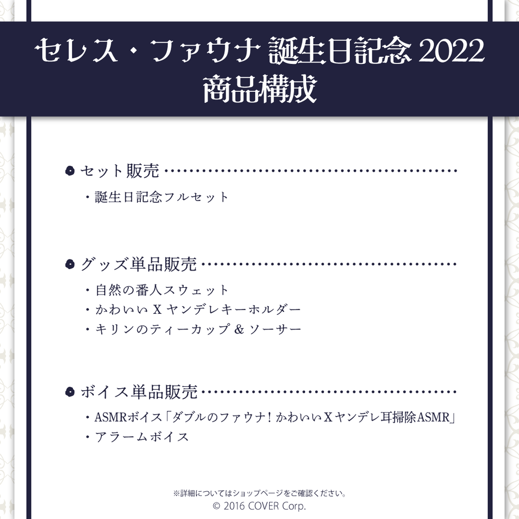 セレス・ファウナの誕生日を記念したフルセット商品です。