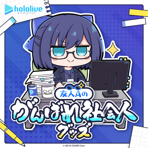 ホロライブ事務所スタッフ友人A(えーちゃん)の「がんばれ社会人グッズ」です。