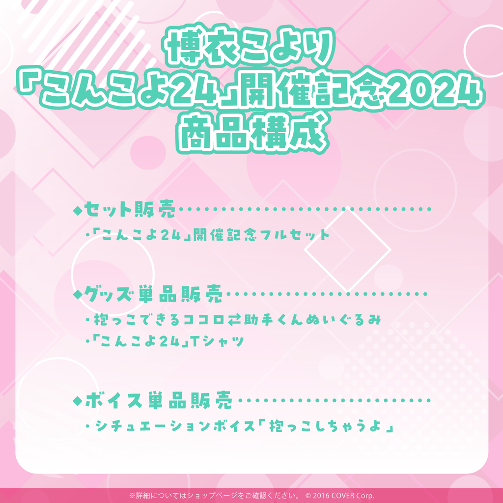 ホロライブプロダクション所属「博衣こより」の配信内企画「こんこよ24」の開催を記念した商品です。