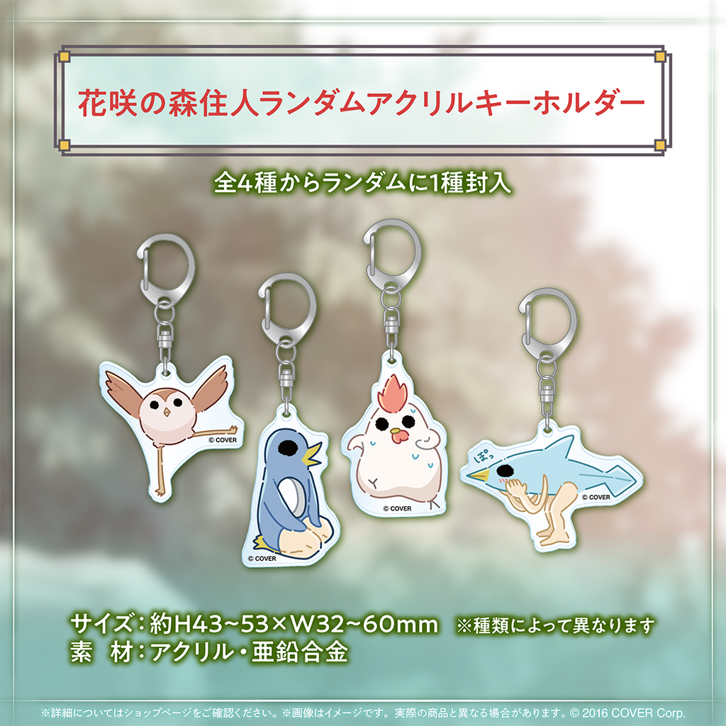 ※「花咲の森住人ランダムアクリルキーホルダー」は全4種からランダムに1種封入。