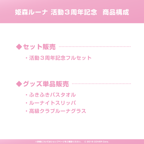 姫森ルーナの活動3周年を記念したフルセット商品です。