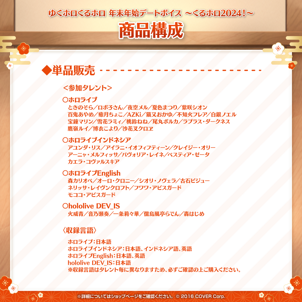 ◇「ゆくホロくるホロ 年末年始デートボイス ~くるホロ2024!~」日本語フルセット