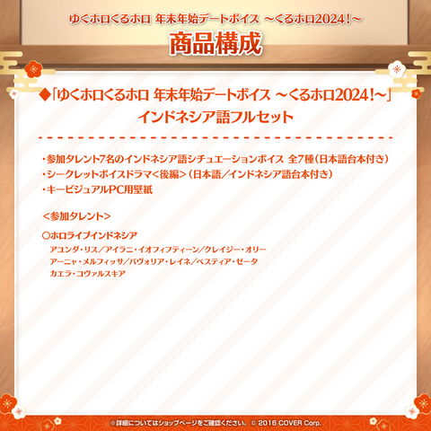 ◇「ゆくホロくるホロ 年末年始デートボイス ~くるホロ2024!~」インドネシア語フルセット