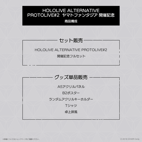 ホロライブ・オルタナティブ「PROTOLIVE#2 ヤマトファンタジア」開催を記念した商品です。