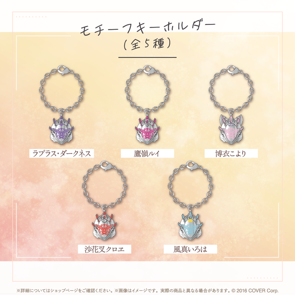 「秘密結社holoX 3周年記念 モチーフキーホルダー」について、正面ロゴ周囲の彩色が黒から無塗装に仕様変更となりました。