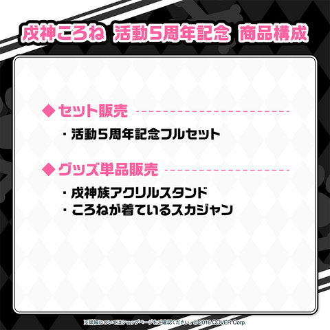 戌神ころねの活動5周年を記念したフルセット商品です。