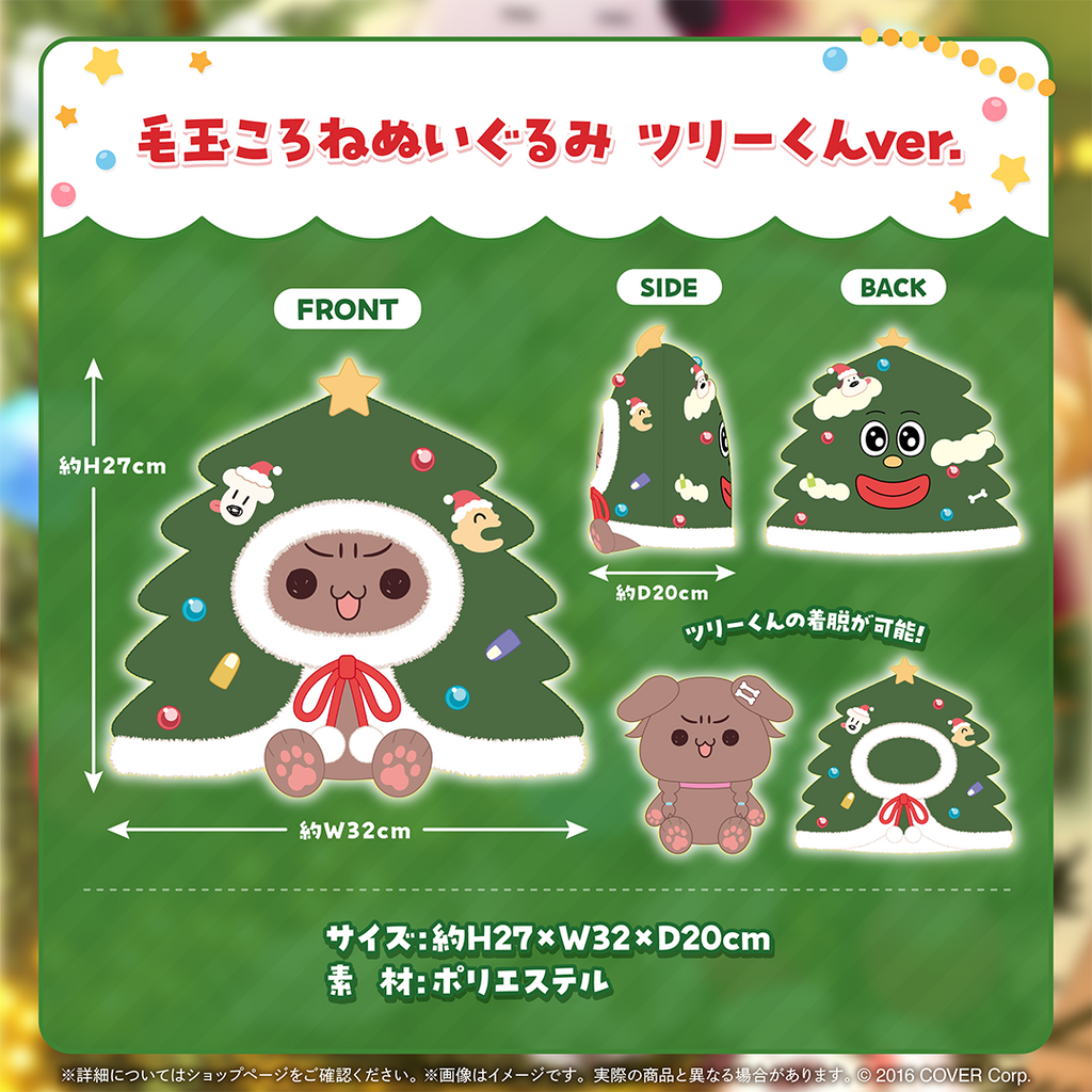 お届け予定日:2024年11月上旬~2024年12月上旬予定ホロライブプロダクション所属「戌神ころね」の世界中が待っていたツリーくんグッズです。