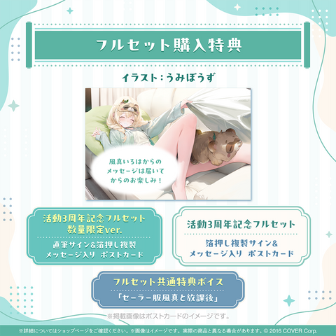 風真いろはの活動3周年を記念した数量限定のフルセット商品です。