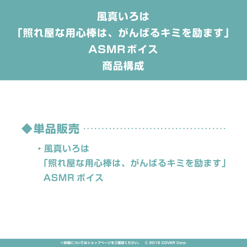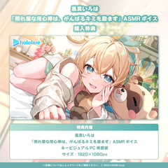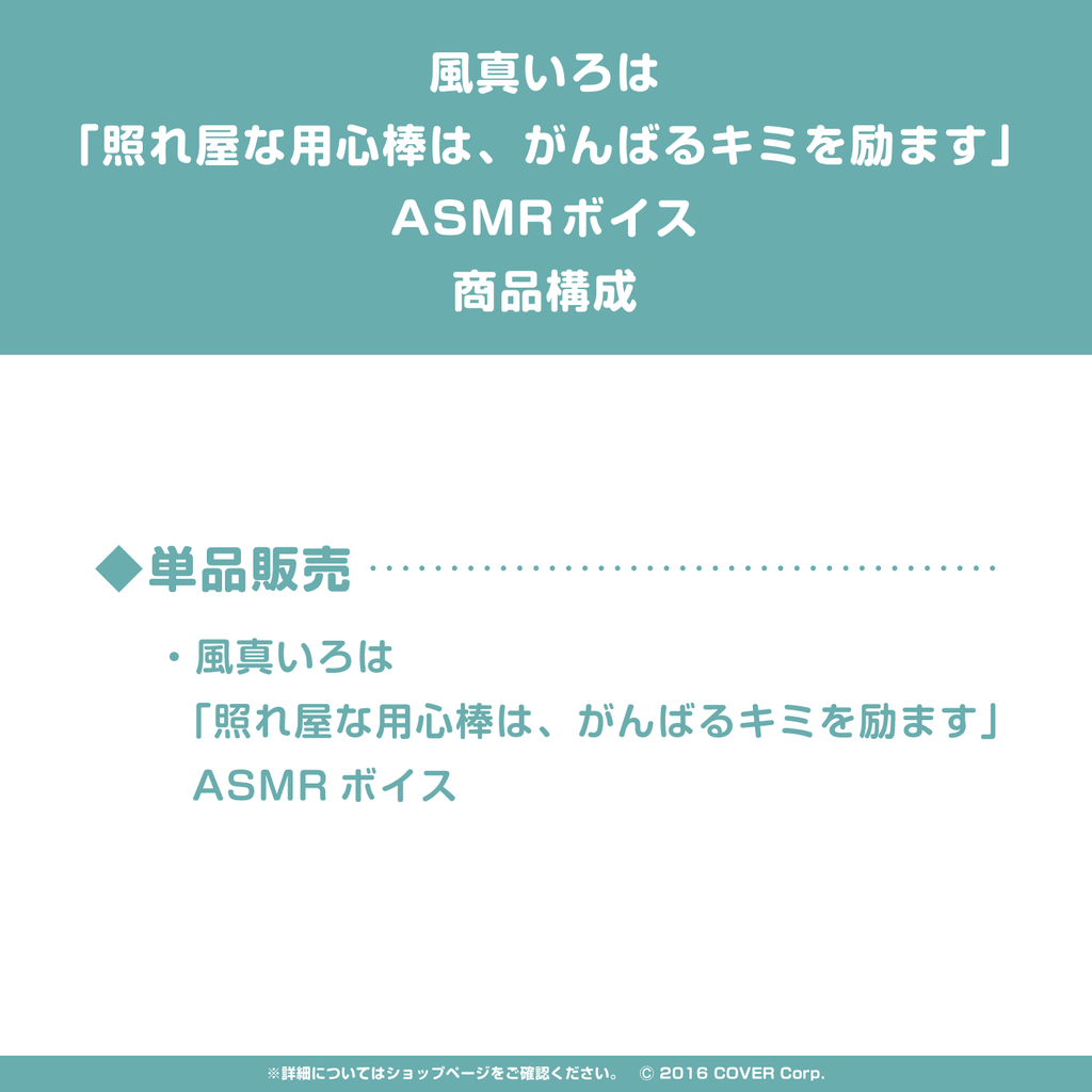 お届け予定日:原則としてご注文完了後、直ちにマイアカウントページ内「デジタルコンテンツリスト」に、ご購入いただいたボイスデータが表示されます。ホロライブプロダクション所属「風真いろは」のASMRボイスが発売!