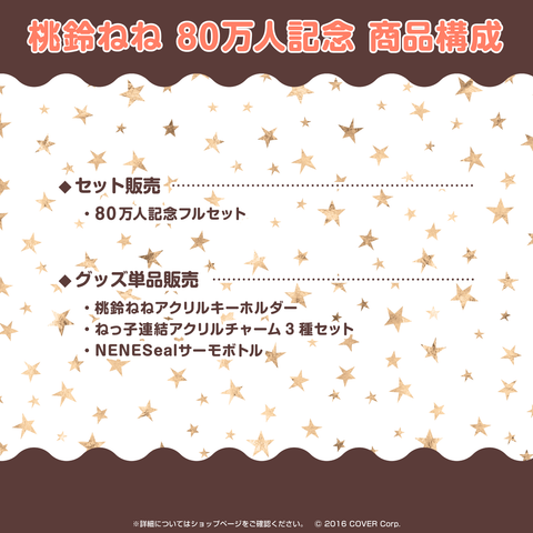 桃鈴ねねの80万人を記念したフルセット商品です。