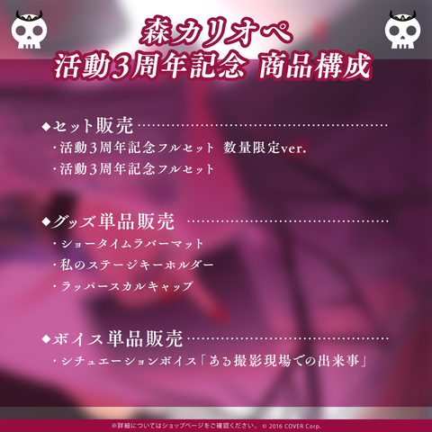 森カリオペの活動3周年を記念した数量限定のフルセット商品です。