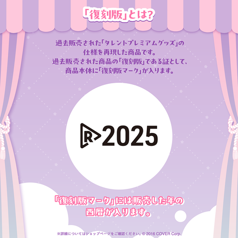 過去販売された「タレントプレミアムグッズ」の仕様を再現した商品です。