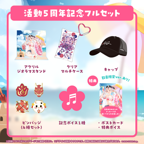 百鬼あやめの活動5周年を記念した数量限定のフルセット商品です。