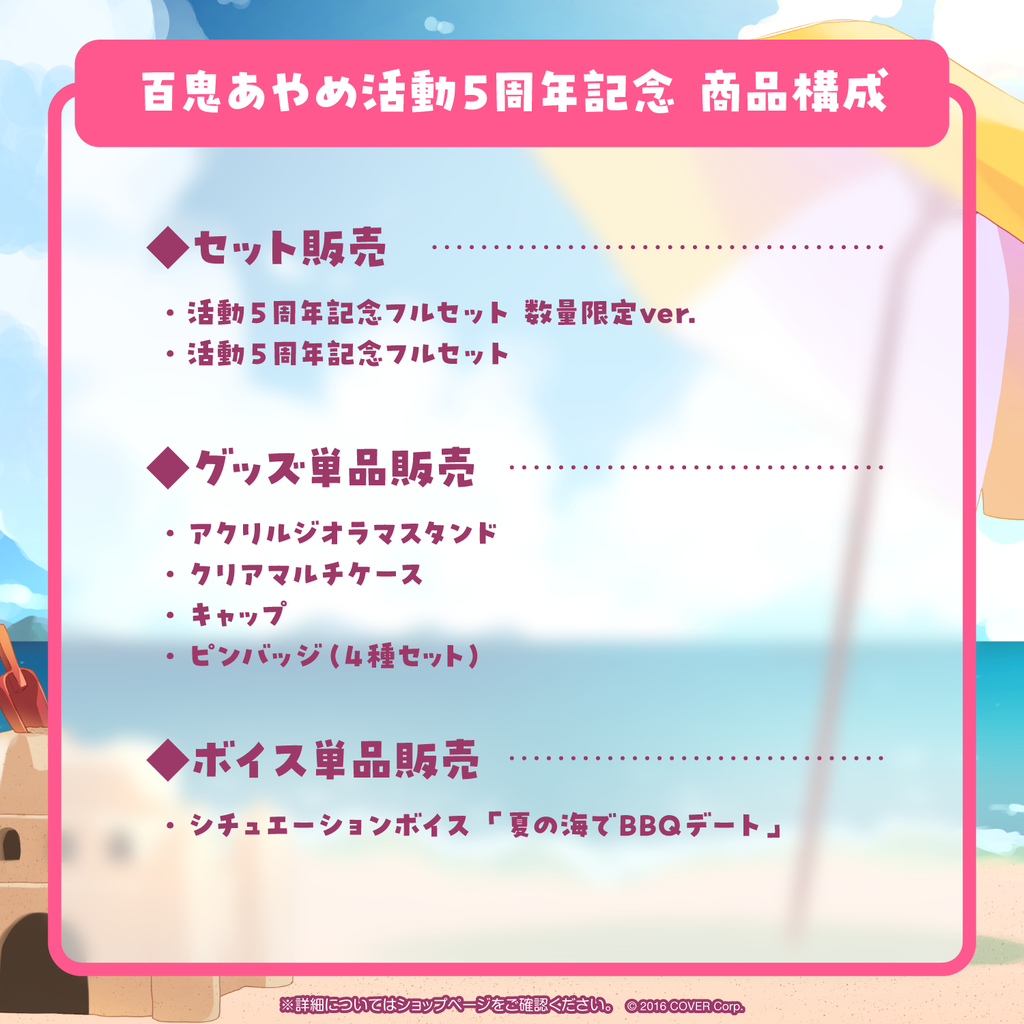 百鬼あやめの活動5周年を記念したフルセット商品です。