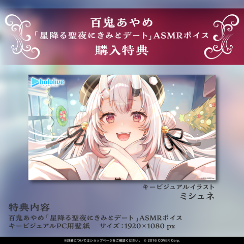 ホロライブプロダクション所属「百鬼あやめ」のクリスマスデートをテーマとしたASMRボイスが発売!