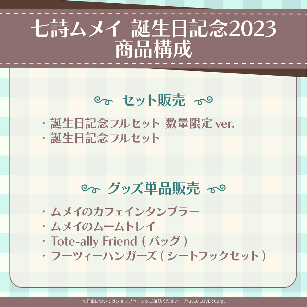 七詩ムメイの誕生日を記念したフルセット商品です。