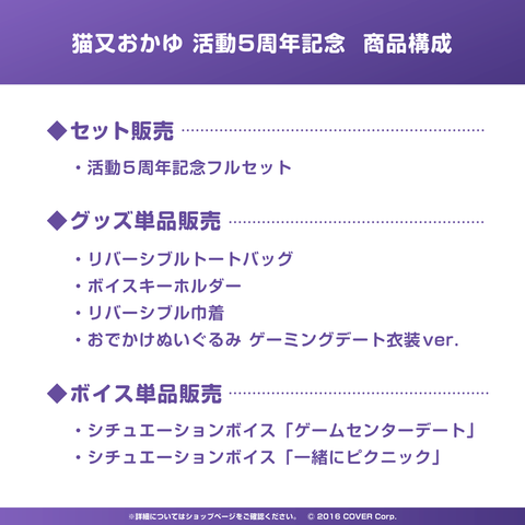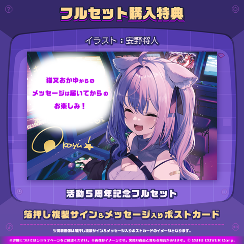 猫又おかゆの活動5周年を記念したフルセット商品です。