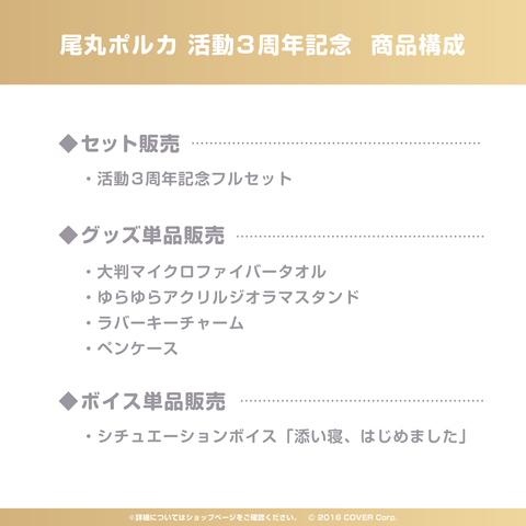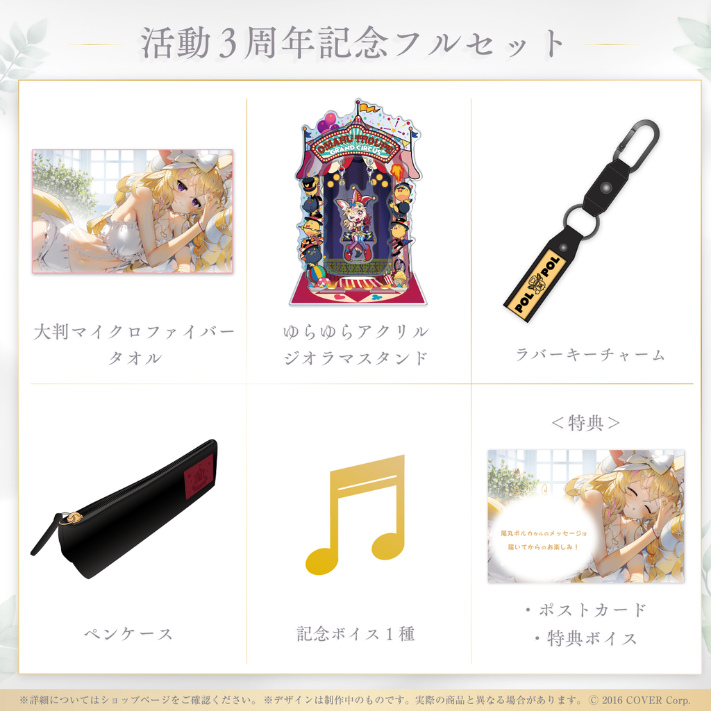 尾丸ポルカの活動3周年を記念したフルセット商品です。