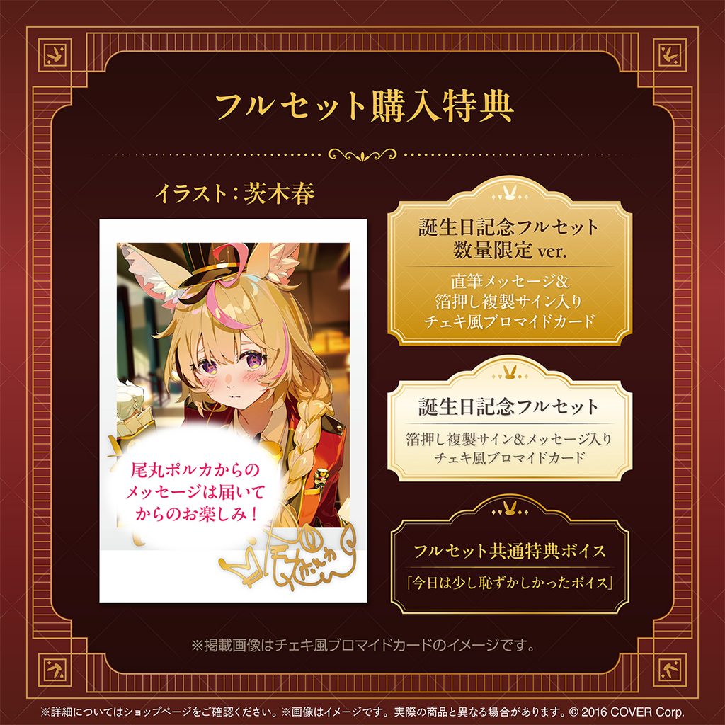 ・特典:尾丸ポルカ箔押し複製サイン&メッセージ入り「茨木春描き下ろし チェキ風ブロマイドカード」