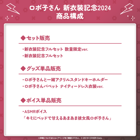 ロボ子さんの新衣装を記念した数量限定のフルセット商品です。