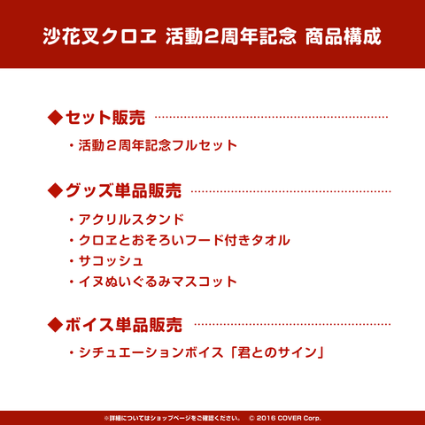 沙花叉クロヱの活動2周年を記念したフルセット商品です。