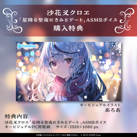 ホロライブプロダクション所属「沙花叉クロヱ」のクリスマスデートをテーマとしたASMRボイスが発売!