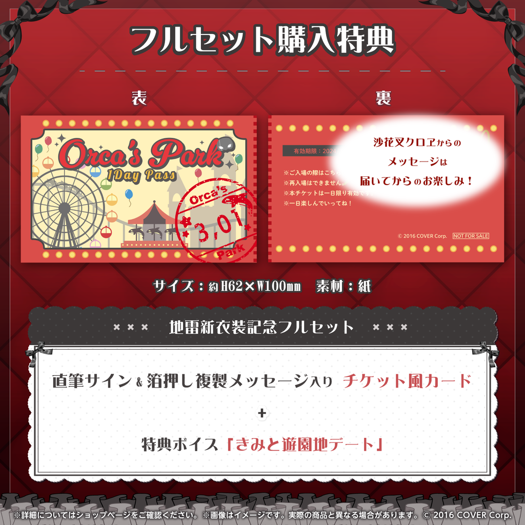 ・特典:沙花叉クロヱ直筆サイン&箔押し複製メッセージ入り 「チケット風カード」