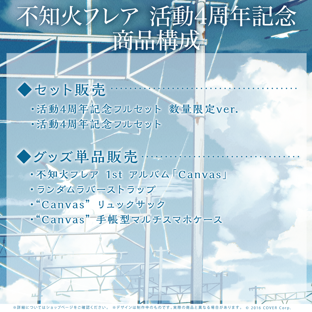 不知火フレアの活動4周年を記念した数量限定のフルセット商品です。