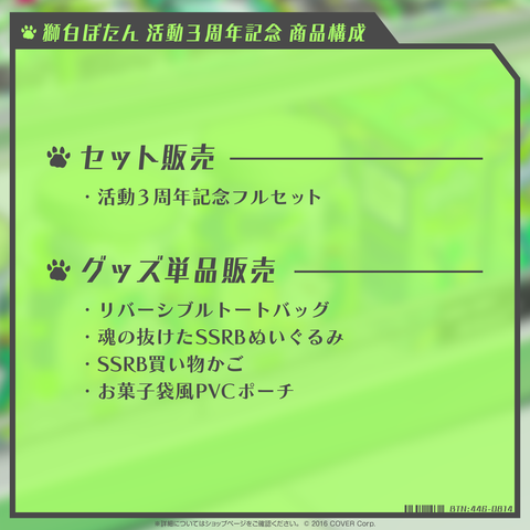 獅白ぼたんの活動3周年を記念したフルセット商品です。