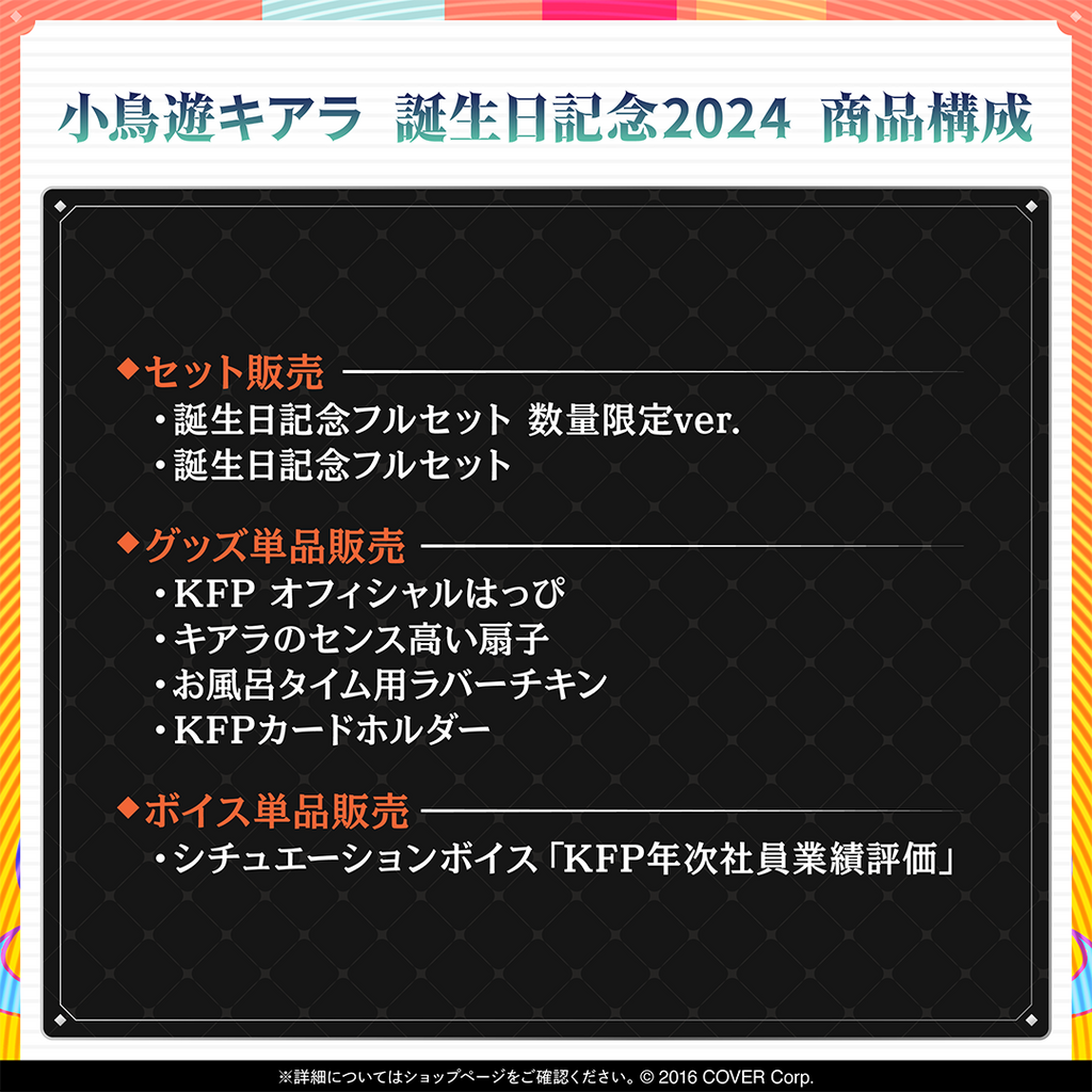 小鳥遊キアラの誕生日を記念した数量限定のフルセット商品です。