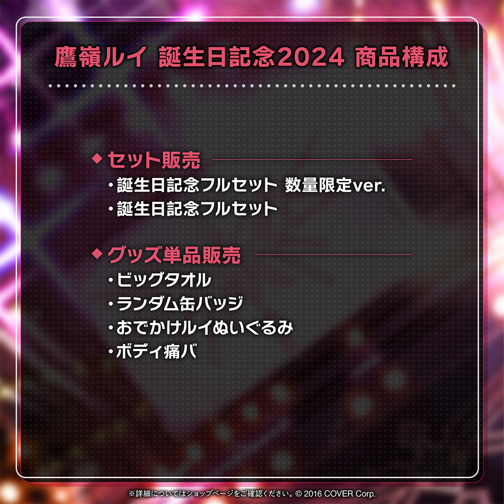 鷹嶺ルイの誕生日を記念したフルセット商品です。