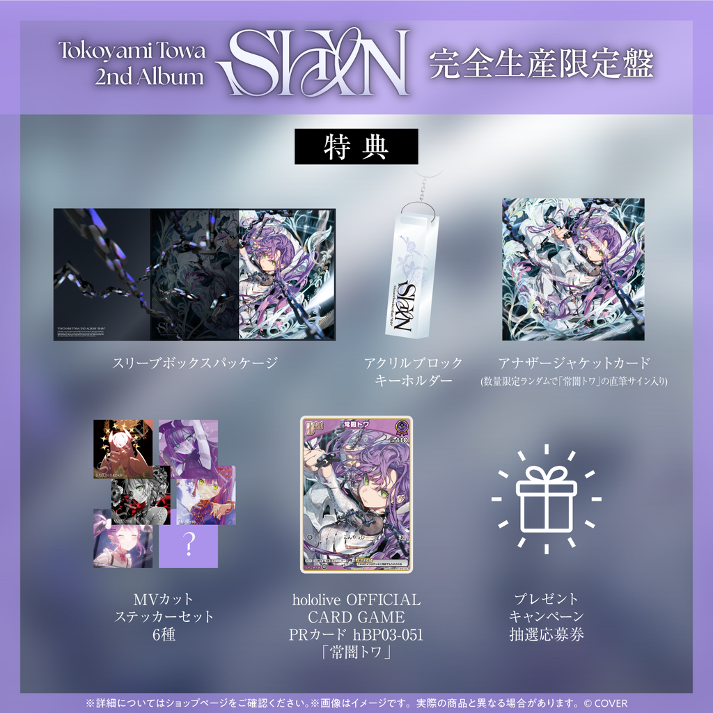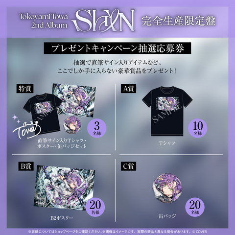 本商品(常闇トワ 2nd Album『SHIN』)以外の商品と同一カート内でお買い求めいただけません。あらかじめご了承ください。受注生産商品をご購入される際は、別決済で購入をお願いいたします。