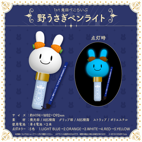 兎化認定バッジ が特典でついてくる、野うさぎペンライト、野うさぎタオル、Tシャツのセット商品です。