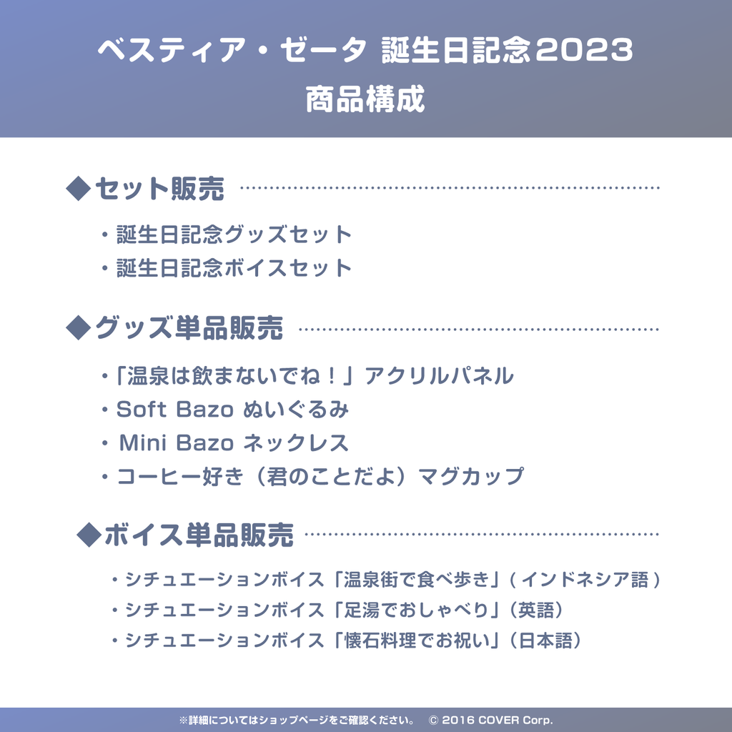 ベスティア・ゼータの誕生日を記念したグッズのセット商品です。